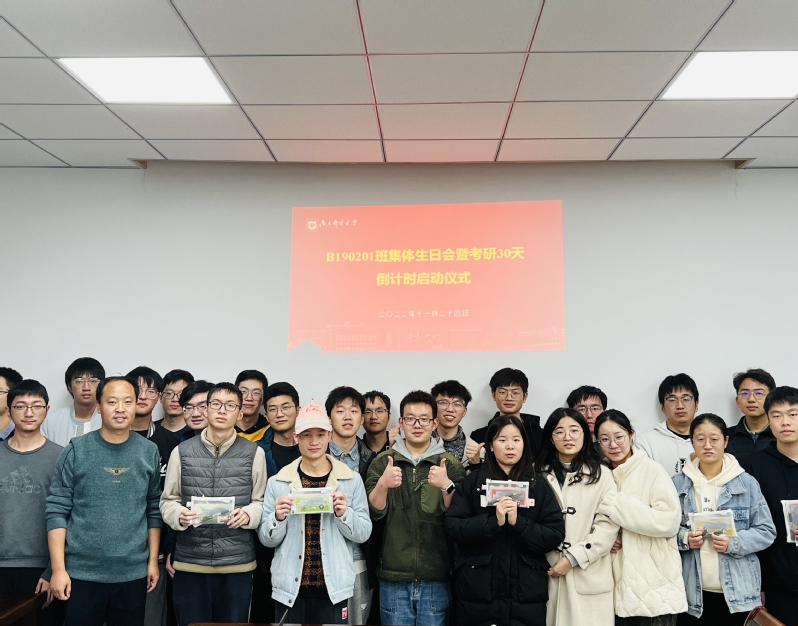 11月24日晚,电子与光学工程学院、柔性电子(未来技术)学院2019级电子科学与技术专业B190201班兼职班主任张超老师为班级举办集体生日会暨考研30天倒计时启动仪式,学生班主任王怡钦和班级全体同学参加,会议由辅导员孙树将老师主持。