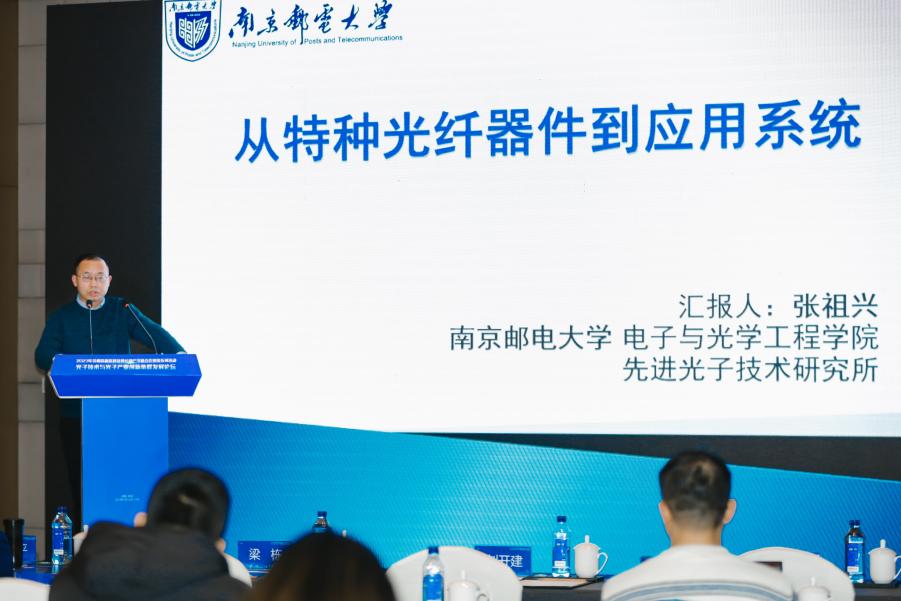 电子与光学工程学院、柔性电子(未来技术)学院博士生导师、欧盟玛丽居里学者、日本文部科学省GCOE研究员张祖兴教授做了题为“从特种光纤器件到系统”的报告。报告介绍了南京邮电大学先进光子技术研究所围绕特种光纤设计、器件制备到系统应用等方面的研究工作。具体包括设计和制备了面向5G光通信模式转换器件和偏振复用器件及大容量模式复用光纤,为大容量光通信系统提供新的解决方案;研制了百瓦级超短脉冲光纤激光器,并能控制其输出模式,有效提高脉冲激光加工效率;研发的分布式光纤传感系统,为智慧城市系统提供新思路。