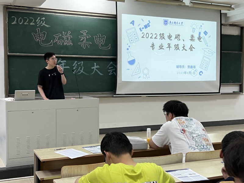 6月1日,电子与光学工程学院、柔性电子(未来技术)学院2022级电磁场与无线技术专业、柔性电子学专业在教2-201召开“慎终如始,未来可期”主题年级大会,会议由辅导员贾鑫海老师主持,2022级电磁场与无线技术专业、柔性电子学专业全体同学参会。