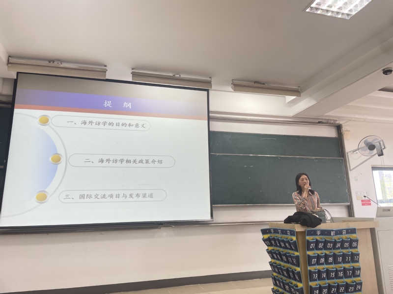 为了让同学们更好地了解海外访学项目以及相关申请条件、注意事项、相关费用等,4月20日下午,学院在教三102教室开展了2023年境外访学项目宣讲会,学院特别邀请了我校国际合作与交流处朱治亚老师主讲,2022级光电信息科学与工程专业16-21班的学生积极参加,宣讲会由李华婷老师主持。