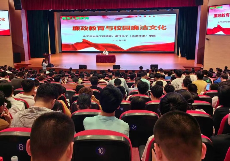为帮助2023级新生们更好地融入大学环境,树立良好的道德观念。9月10日上午,电子与光学工程学院、柔性电子(未来技术)学院在南邮青春剧场开展了“廉政教育与校园廉洁文化”主题入学教育。本次入学教育由学院纪检委员宋健康老师主讲。