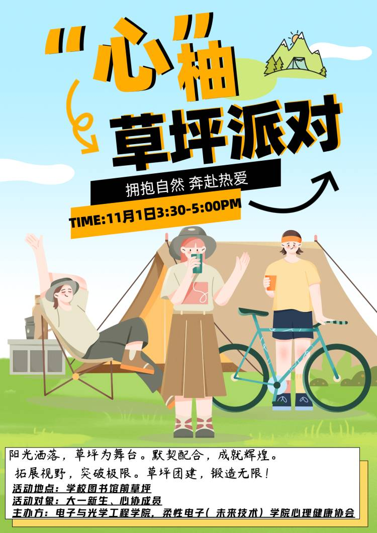 为丰富社团新成员的校园生活,促进彼此间的了解,创建团结和睦的心协大家庭,11月1日,电子与光学工程学院、柔性电子(未来技术)学院心理健康协会在仙林校区图书馆前方大草坪举办了“拥抱自然,奔赴热爱”主题团建活动,社团新老成员都争相参与其中。