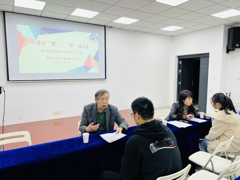 为进一步提升2024届毕业生就业竞争力,实现高质量就业。11月22日下午,电子与光学工程学院、柔性电子(未来技术)学院开展化繁为“简”,“职”通未来—2024届毕业生简历优化指导活动。活动邀请到学院关工委成谢峰老师、学院分团委书记肖俊桂、徐庄软件园艾瑞实训中心资深HR、学院研究生辅导员陆静如、2024届毕业班全体辅导员。