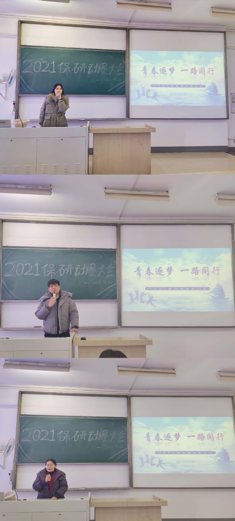 为帮助同学们明确保研方向、熟悉备考流程、增强信心与决心,充分发挥朋辈互助、示范引领作用,更好地发掘自身的潜能,明确未来的方向,12月22日,电子与光学工程学院、柔性电子(未来技术)学院2021级召开“青春逐梦·一路同行”保研动员大会。本次会议由辅导员刘心宇主持,邀请2020级优秀学生代表缪政乾、林雪莹主讲,辅导员孜乃提古丽·布尔汉、赵昱莼以及2021级部分同学参加。
