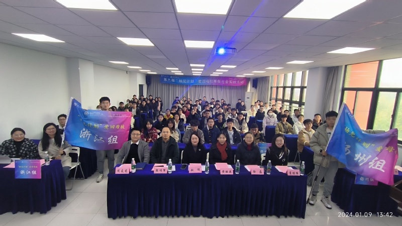 南京邮电大学第九届“柚见计划”爱回母校活动以搭建劳动实践平台、培养提升学生综合素质为出发点,促进南邮学子回馈母校、传递知识、宣传南邮为目标。1月9日,电子与光学工程学院、柔性电子(未来技术)学院开展了第九届“柚见计划”爱回母校寒假社会实践活动(浙江组、扬州组)出征仪式,学院党委书记黄丽亚,学校招生就业处副处长赵伟,学院党委副书记、副院长徐磊,招生就业处老师殷传军,校团委闻友龙出席,辅导员强增寿、梁博、孜乃提古丽·布尔汉和祝腾老师及浙江、扬州组爱回母校团队全体成员参加,仪式由学院分团委书记肖俊桂老师主持。