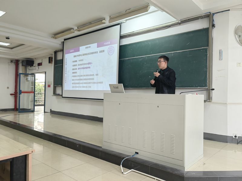 为帮助同学们打破信息壁垒,增强学习动力,完善学业规划,3月26日下午,电子与光学工程学院、柔性电子(未来技术)学院2022级电磁场与无线技术专业、柔性电子学专业在教2-202教室举行本学期“启明远航”主题年级大会。本次大会邀请了两位2020级优秀学长学姐为同学们讲解科研、考研、竞赛等经验,辅导员贾鑫海老师主持,全体同学参会。