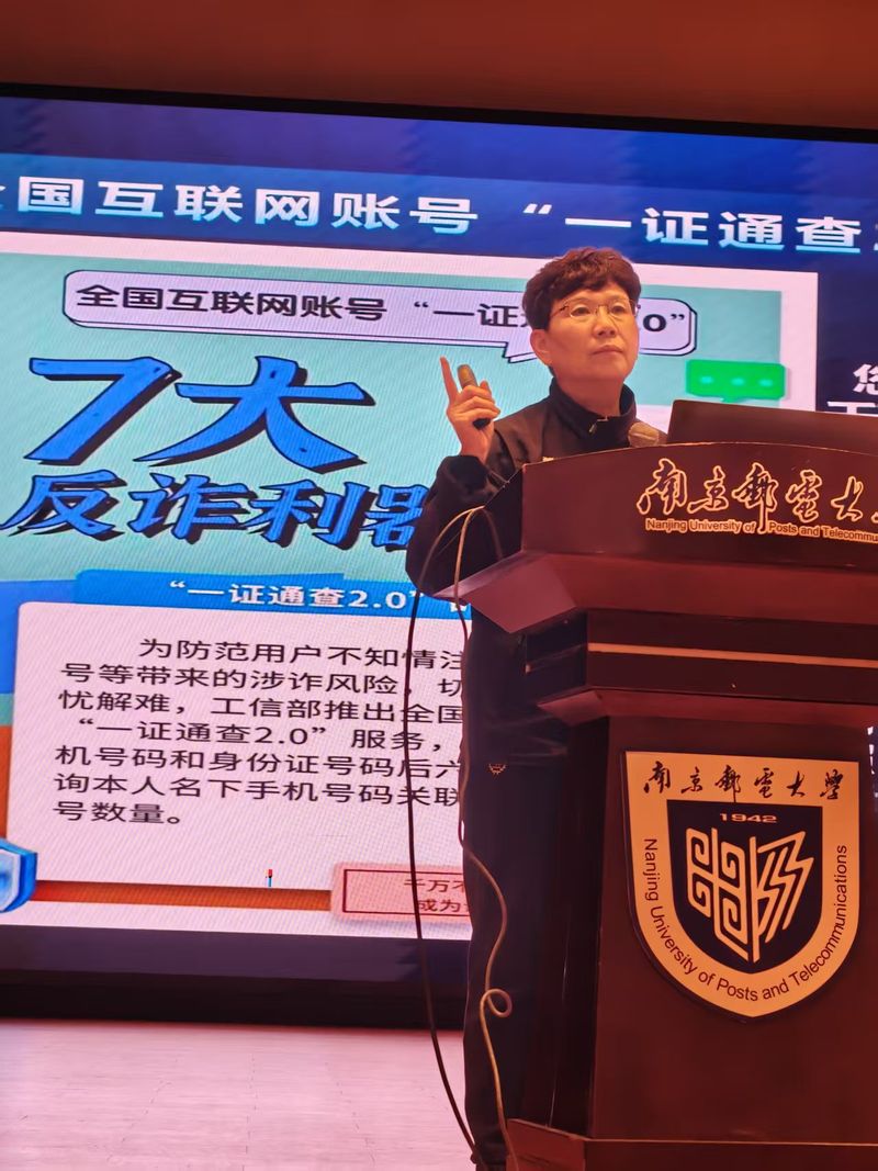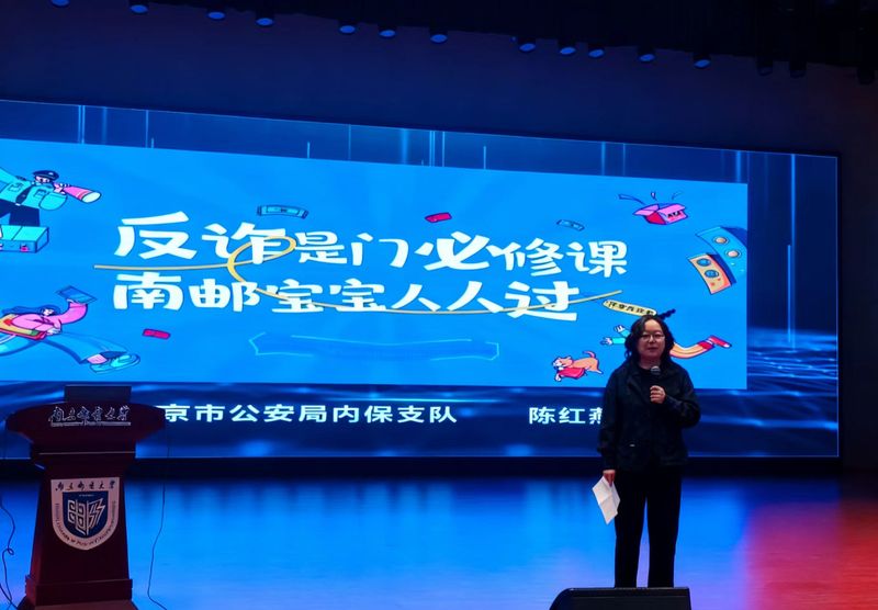 为提高新生防范电信网络诈骗“免疫力”,切实有效提升法治校园建设水平。11月5日晚,电子与光学工程学院、柔性电子(未来技术)学院精心组织了一场题为“反诈是门必修课,南邮宝宝人人过”的反诈主题报告会。报告会特邀南京市公安局资深反诈宣传员陈红燕警官主讲,学院2025级本科新生齐聚一堂,共同学习这堂重要的“安全必修课”。