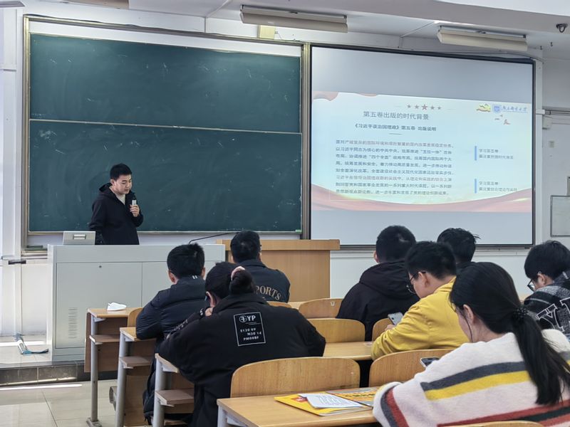 2025年10月28日,南京邮电大学电子与光学工程学院,柔性电子(未来技术)学院本科第二、第三党支部在教3-309召开专题学习会,以线下集中学习、互动研讨的形式,深入学习《习近平谈治国理政》第五卷中关于中国式现代化的重要论述。党支部书记强增寿主持会议并领学,党支部全体党员参加学习。强老师在领学中强调《习近平谈治国理政》第五卷深刻阐释了中国式现代化的中国特色、本质要求和重大原则,为实现新时代新征程党的使命任务提供根本遵循。南京邮电大学发轫于抗日根据地战邮干训班,信息报国的红色基因与中国式现代化的科技自立自强要求高度契合。强老师结合学校办学特色,深入解读了中国式现代化与支部工作的结合点。《习近平谈治国理政》第五卷中科技自立自强是国家强盛之基、安全之要的论述,正是青年先锋的使命所在,而二十届历次全会部署的建设网络强国发展新质生产力等任务,为支部青年在学习科研、成长成才中践行初心使命指明了方向。