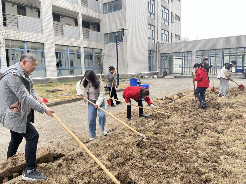阳春三月,草长莺飞,为厚植生态文明理念,培养学生的劳动意识和崇尚劳动的精神,3月14日下午,在全国第46个植树节来临之际,电子与光学工程学院、柔性电子(未来技术)学院关工委老教师成谢锋、2022级辅导员老师们与学院多名青年学生一同前往桃苑宿舍,开展培植菜地劳动教育实践活动。