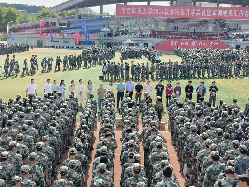 金秋九月,秋高气爽。9月23日下午,校关工委副主任储成祥老师,电子与光学工程学院、柔性电子(未来技术)学院党委书记黄丽亚老师,党委副书记、副院长徐磊老师和全体2024级辅导员、班主任、班主任助理走进训练场地,开展2024级本科生爱党拥军教育暨军训慰问活动。