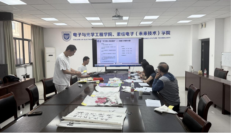 为深化“三全育人”体系建设,4月11日上午,电子与光学工程学院、柔性电子(未来技术)学院在电光楼A327举办第三届“柚子家年华”宿舍文化节作品评审活动。本次活动以“光熠舍影,电燃青春主场”为主题,特邀学院关工委成谢峰老师担任评审专家,与学院学生工作团队共同评选出展现新时代大学生精神风貌的优秀作品。