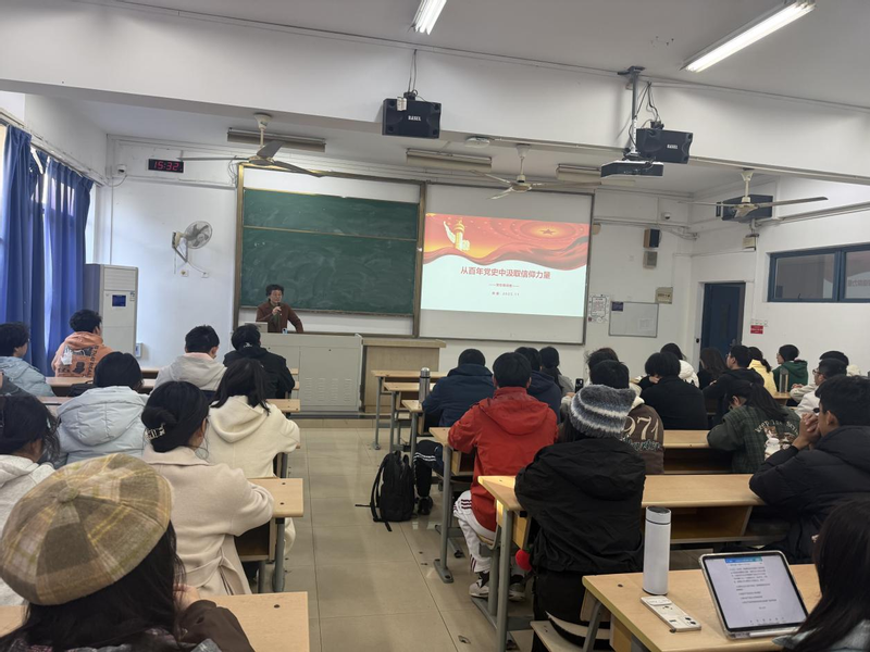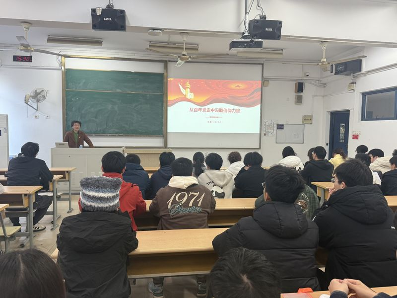 11月19日下午,校关工委讲师团朱清研究员为电子与光学工程学院、柔性电子(未来技术)学院2025年秋季学期党员发展对象培训班学员讲党课。朱老师以“从百年党史汲取信仰力量”为题,带领大家重温百年复兴历程,学习伟大建党精神,树牢党员意识,强化使命担当。