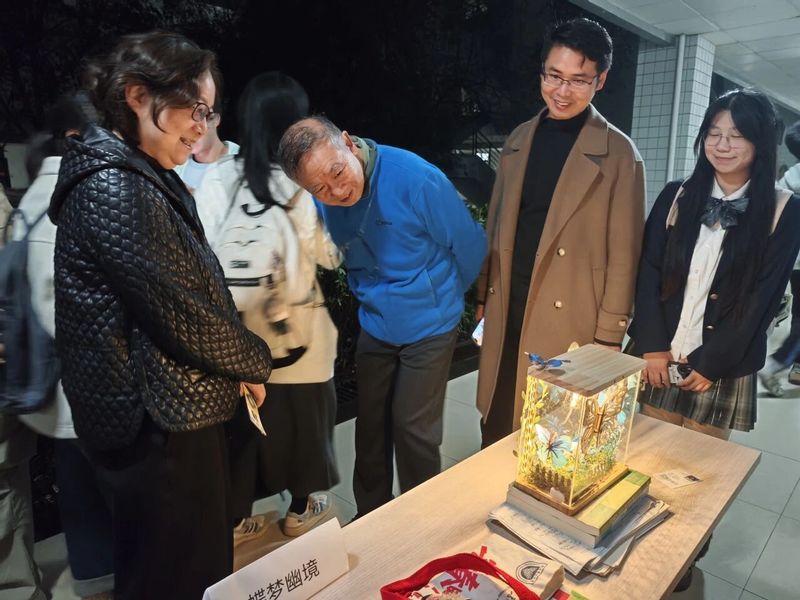 活动现场气氛热烈,创意频出。展出的作品兼具科技感与艺术性,从智能控制到环境感知,从无线通信到光影互动,充分展现了同学们的奇思妙想与扎实的工程功底。有的作品以光敏电阻控制灯光明暗,模拟自然光照变化,造型灵动,吸引了众多观众驻足观看;有的作品利用灯光与影像的融合,呈现出光与影的奇妙交织,引得现场观众纷纷拍照留念。