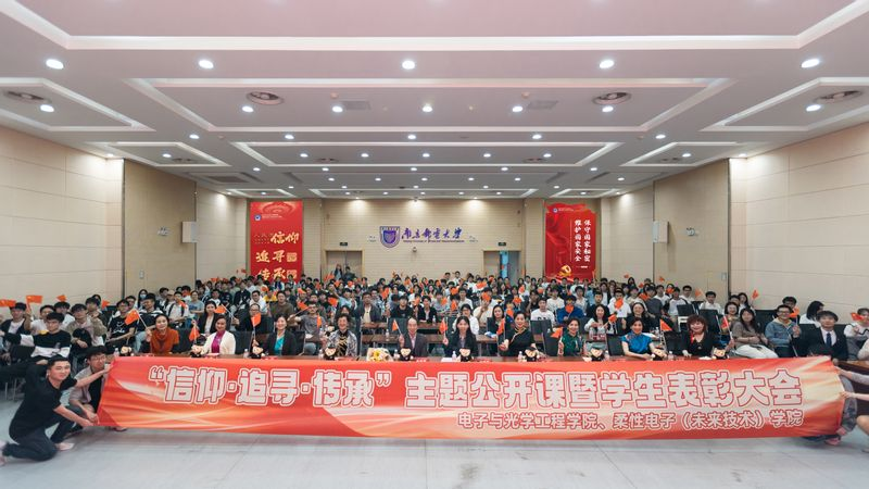 习近平总书记明确指出思政课建设要向改革创新要活力。这为新时代为什么要办好思政课、怎样办好思政课提供了科学指导和行动指南。电子与光学工程学院、柔性电子(未来技术)学院牢记嘱托,积极推进思想政治教育改革创新,推动思政课不断走向深入。4月25日,学院在仙林校区中兴报告厅举办了“信仰·追寻·传承”沉浸式思政课暨学生表彰大会,百余名师生同上一堂“思政课”。学院党委书记黄丽亚,学院党委副书记、副院长徐磊,校关工委颜福康、校退休教师杨玲、崔景伍等9名老师出席活动,学院督导许吉、孔梅梅,校辅导员宣讲团成员、物联网学院吴孙玉笑和学院全体辅导员参加活动。