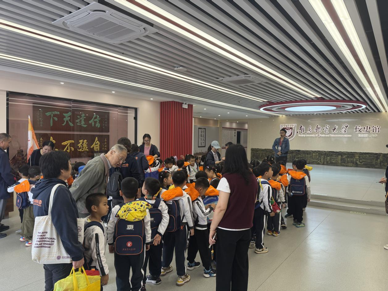 为更好地传承红色文化,深入弘扬革命精神,厚植爱国主义情怀,10月12日上午,在南京邮电大学工会、贝尔英才学院关工委与电子与光学工程学院、柔性电子(未来技术)学院关工委的共同组织下与南京市栖霞区鸿雁名居幼儿园开展了“萌娃携手‘上’大学 红色基因代代传”主题教育活动。孩子们满怀憧憬走进南京邮电大学,开启了红色历史研学之旅。南京市栖霞区鸿雁名居幼儿园牟园长,贝尔英才学院党委书记、关工委主任毛建平,关工委副主任张俊祥,分团委书记王奕权及两院关工委秘书参加了本次活动。