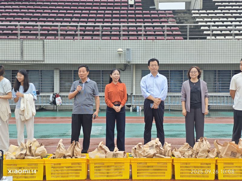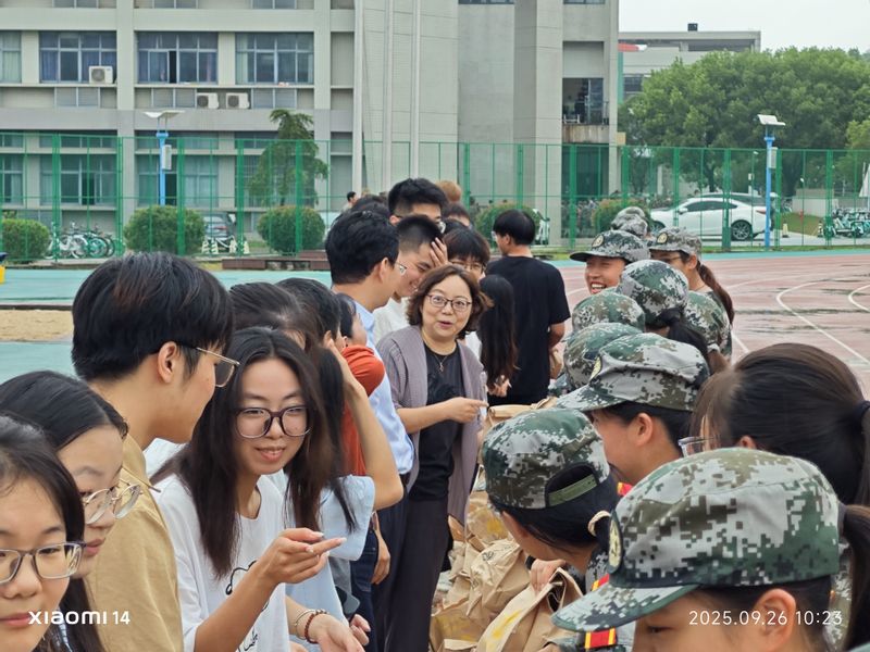 为了解2025级新生军训情况,鼓舞提振军训学生士气,9月26日上午,电子与光学工程学院、柔性电子(未来技术)学院党委书记黄丽亚,院长余林蔚,学院党委副书记、副院长徐磊,校关工委副秘书长张和明老师,团委书记吴鹏,2025级新生辅导员刘心宇、赵昱莼、孜乃提古丽·布尔汉、强增寿、姜子潮老师及全体2025级学生班主任深入军训场地,亲切慰问正在开展军训的2025级新生及承训教官,为新生与教官们送去学院的关怀与鼓励。